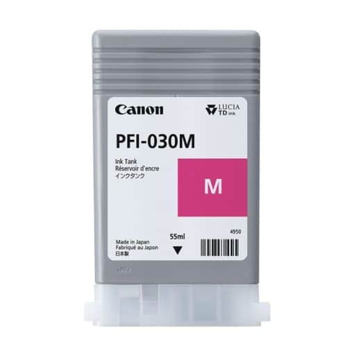 La cartouche d’encre Canon PFI-030M, certifiée par Canon, est une encre magenta de 55 ml pour traceurs Canon TA-20 et TA-30.