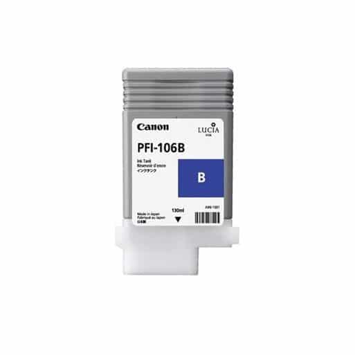 La cartouche d’encre bleue Canon PFI-106B, certifiée Canon, est une encre pigmentée de 130 ml spécialement conçue pour les imprimantes iPF-6300, iPF-6350, iPF-6400 et iPF-6450.