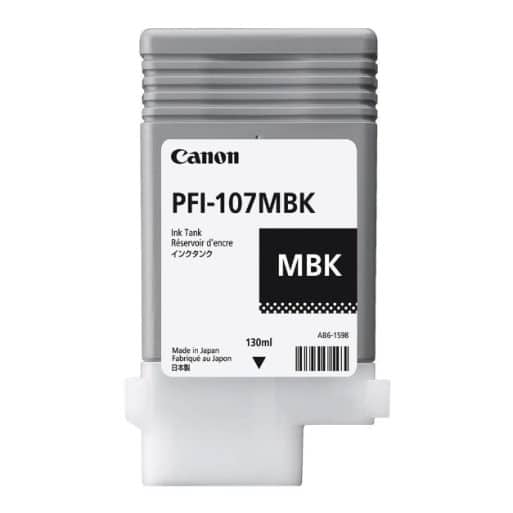 La cartouche d’encre Canon PFI-107MBK de 130 ml certifiée Canon offre une encre noire mate de qualité professionnelle.