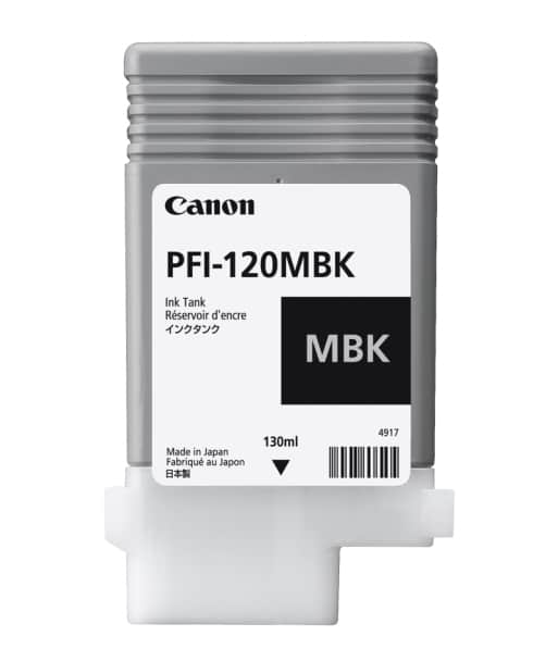 Découvrez l’Encre Canon PFI-120MBK Noir Mat, une cartouche certifiée conçue pour les traceurs imagePROGRAF TM 200, 205, 255, 300, 305, 350 et 355, GP 200, 300.