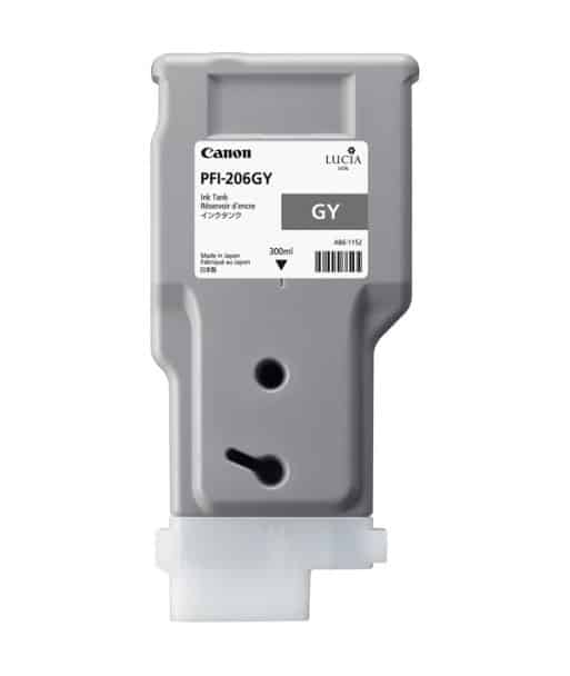 La cartouche d’encre Canon PFI-206GY de 300 ml offre une encre pigmentée grise certifiée Canon, idéale pour les imprimantes iPF-6400, iPF-6450 et iPF-6400S.