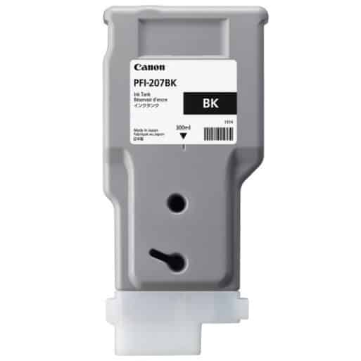 La cartouche d’encre Canon PFI-207BK, d’une capacité de 300 ml, offre une encre noire intense et professionnelle.