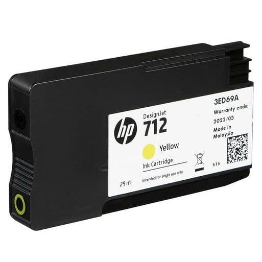 La cartouche d’encre HP 712 jaune originale, référence produit 3ED69A, est conçue pour les traceurs HP Designjet STUDIO, T230, T250, T630 et T650.