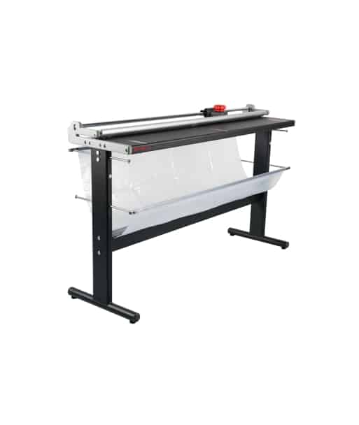Découvrez les caractéristiques techniques irréprochables de la « Coupeuse Trim 130 sur support – Chatel ». Cette coupeuse robuste, fiable et précise est conçue pour les plans de grand format. Avec une largeur de coupe de 1300mm, elle offre des coupes de haute précision. Sa conception conviviale simplifie l’entretien et l’utilisation, avec un arbre de guidage rond qui facilite le remplacement de la lame. Le couteau rotatif auto-affûtant en acier trempé et la lame fixe en acier inoxydable permettent des coupes précises sur du papier jusqu’à 0,4 mm d’épaisseur. L’alignement se fait sans effort grâce à son presseur de feuilles. Complément idéal de vos imprimantes plotwave ou designjet pour une gestion efficace des stocks.