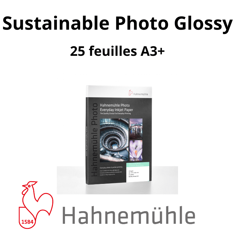 Le Sustainable Photo Glossy 220 g/m² de Hahnemühle est un papier photo jet d’encre extra blanc, fabriqué à partir de 100 % d’alpha-cellulose, alliant qualité d’impression professionnelle et engagement environnemental.